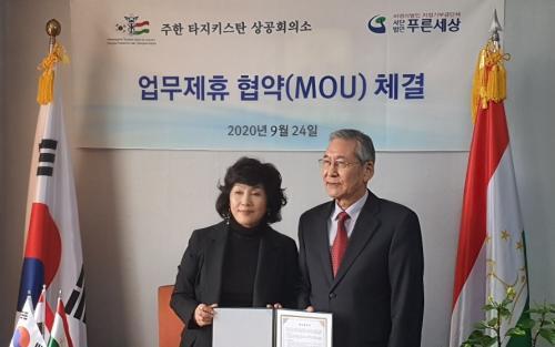 »çÁø=(»ç)Ǫ¸¥¼¼»ó, ŸÁöŰ½ºÅº°ú ¹®È­±³·ù Çù¾à ü°á. (¿ÞÂʺÎÅÍ Å¸ÁöŰ½ºÅº ÁÖÇÑ »ó°øÈ¸ÀÇ¼Ò È«ÀÚÀ± ȸÀå, (»ç)Ǫ¸¥¼¼»ó ¼Ûº´ÈÆ ÀÌ»çÀå)