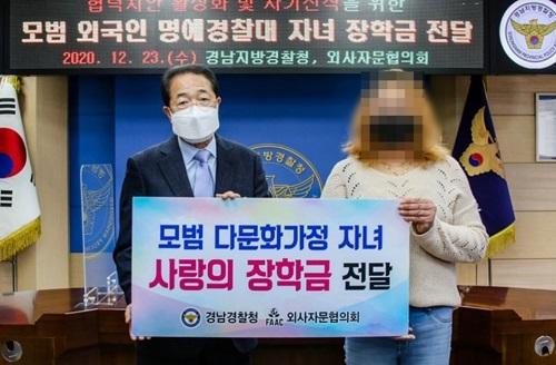 [Çѱ¹BBC¹æ¼Û=±ÇÁöÇý ±âÀÚ] °æ³²°æÂûû°ú ¿Ü»çÀÚ¹®ÇùÀÇȸ´Â ½ÅÁ¾ Äڷγª19·Î ÀÎÇØ ¾î·Á¿òÀ» °Þ°í ÀÖ´Â ¸ð¹ü ¿Ü±¹ÀÎ ¸í¿¹°æÂû´ë ´ë¿ø ÀÚ³àµé¿¡°Ô ÀåÇÐ±Ý Àü´Þ Çà»ç¸¦ °³ÃÖÇß½À´Ï´Ù.