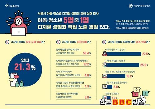 [Çѱ¹BBC¹æ¼Û´º½º=ÀÌÁö¿ø ±âÀÚ] ¼¿ï½Ã°¡ ÃÊ¡¤Áß¡¤°íµîÇлý 4õ ¸íÀ» ´ë»óÀ¸·Î 'µðÁöÅÐ ¼º¹üÁË ÇÇÇØ ½ÇŸ¦ Á¶»çÇÑ °á°ú, ¾Æµ¿¡¤Ã»¼Ò³âÀÇ 21.3%°¡ äÆÃÀ̳ª SNS µîÀÇ µðÁöÅÐ ¼º¹üÁË¿¡ ³ëÃâµÈ °æÇèÀÌ ÀÖ´Ù°í ´äÇß½À´Ï´Ù.