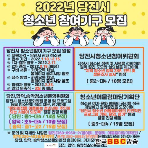 ÀÚ¼¼ÇÑ ¸ðÁý ÀÏÁ¤ ¹× ½Åû ¹æ¹ýÀº ´çÁø¡¤ÇÕ´öû¼Ò³â¹®ÈÀÇÁý ȨÆäÀÌÁö °øÁö»çÇ× ¹× īī¿ÀÅå ä³ÎÀ» Âü°íÇÏ¸é µÇ¸ç, °ü·Ã ¹®ÀÇ»çÇ×Àº ´çÁø½Ã Æò»ýÇнÀ°ú û¼Ò³âÆÀ(¢Ï041-360-6960~2)À¸·Î ¹®ÀÇÇÏ¸é µÈ´Ù.