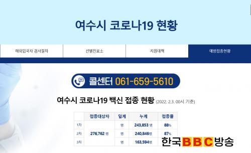 ÇÑÆí 2¿ù 3ÀÏ 00½Ã ±âÁØ ¿©¼ö½ÃÀÇ Äڷγª19 ¹é½Å Á¢Á¾·üÀº 2Â÷°¡ 87%, 3Â÷ Á¢Á¾ÀÌ 59.1%ÀÌ´Ù. 12¼¼¿¡¼ 17¼¼ Á¢Á¾·üÀº 2Â÷ 67%ÀÌ´Ù.