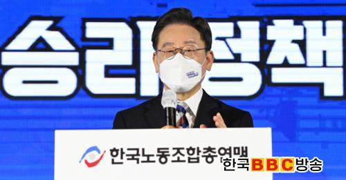 »çÁø=´õºÒ¾î¹ÎÁÖ´ç ÀÌÀç¸í ´ë¼±È帰¡ 10ÀÏ ¿ÀÀü ¼­¿ï ¿µµîÆ÷±¸ ¿©Àǵµ Çѱ¹³ëÃÑ¿¡¼­ ¿­¸° ³ëµ¿ Á¤Ã¥ Çù¾à½Ä¿¡¼­ ¹ß¾ðÇϰí ÀÖ´Ù. [»çÁøÃâó=¿¬ÇÕ´º½º]