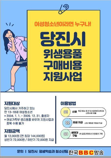 [Çѱ¹BBC¹æ¼Û=ÀÌÀçö ±âÀÚ] ´çÁø½Ã°¡ ÃæÃ»³²µµ ÃÖÃʷΠÁö¿ª ³» ¸ðµç ¿©¼ºÃ»¼Ò³â¿¡°Ô 1Àδ砿ù 1¸¸2000¿øÀÇ À§»ý¿ëǰ(»ý¸®¿ëǰ) ±¸ÀÔºñ¸¦ Áö¿øÇϱâ·Î ÇØ ¡®º¸Æíº¹Áö¡¯ ½ÇÇö¿¡ ÇÑ °ÉÀ½ ´õ ³ª¾Æ°¬´Ù.
