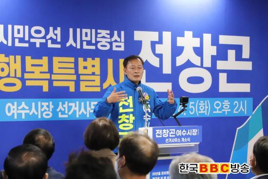 [Çѱ¹BBC¹æ¼Û=±è±â³² ±âÀÚ] ¿À´Â 6¿ù µ¿½ÃÁö¹æ¼±°Å¿¡¼­ ¿©¼ö½ÃÀå¼±°Å ÁÖ¿äÈ帷Π°Å·ÐµÇ´Â Àüâ°ï ¿©¼ö½ÃÀÇȸ ÀÇÀåÀÌ 4¿ù 5ÀÏ ½Ä¸ñÀÏ, ¼±°Å»ç¹«¼Ò °³¼Ò½ÄÀ» ÅëÇØ º»°ÝÀûÀÎ ¼±°Å¿îµ¿À» ½ÃÀÛÇß´Ù.