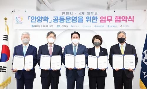û»ç »óȲ½Ç¿¡¼ ¿¸° ¾È¾çÇÐ °øµ¿¿î¿µ Çù¾àÀº ÃÖ´ëÈ£ ½ÃÀå°ú °ü³» 4°³ ´ëÇÐÀΠȲ¿î±¤ ´ë¸²´ë ÃÑÀ塤±è»ó½Ä ¼º°á´ë ÃÑÀ塤¹Ú³ëÁØ ¾È¾ç´ë ÃÑÀ塤±Ç¹ÎÈñ ¿¬¼º´ë ÃÑÀåµéÀÌ Âü¼®ÇÑ °¡¿îµ¥ ÀÌ·ïÁ³´Ù.(»çÁø ÷ºÎ)