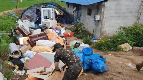 61¿©´Ü 108±âº¸´ë ¼Ò¼Ó À庴 16¸íÀÇ ´ë¹ÎÁö¿ø ÇùÁ¶¸¦ ¹Þ¾Æ ÁøÇàµÈ À̳¯ º¹±¸ÀÛ¾÷Àº Áý¾È ³» Åä»ç¸¦ Ä¡¿ì°í ´ëÇüÆó±â¹°À» ¿Å±â´Â µî ÇÇÇØ º¹±¸¸¦ À§ÇØ ÃÖ¼±À» ´ÙÇß´Ù. ¶ÇÇÑ ¸é»ç¹«¼Ò¿¡¼­´Â ´ëÇüÆó±â¹°À» ¹«»ó¼ö°Å Á¶Ä¡ÇÏ°í °ü³» °¡Àü¾÷ü¿¡¼­´Â Æó°¡ÀüÁ¦Ç° ¹«»ó¼ö°ÅÇÏ¸ç µµ¿òÀÇ ¼Õ±æÀ» º¸ÅÉ´Ù.