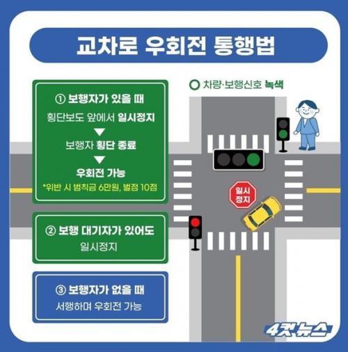 ƯÈ÷, °¡Àå ¾î·Á¿î ºÎºÐÀÌ ±³Â÷·Î ¿ìȸÀü ½Ã Â÷·® ½ÅÈ£¿Í ¿À¸¥ÂÊ È¾´Üº¸µµ¿¡ º¸ÇàÀÚ ½ÅÈ£°¡ ³ì»öÀÏ ¶§ ¿ìȸÀüÀ» ÇÏ´Â °æ¿ì´Ù. ÁÖº¯¿¡ ¾Æ¹«µµ ¾ø´Ù¸é ¼ÇàÇÏ¸é¼ ¿ìȸÀüÇÒ ¼ö ÀÖÁö¸¸ º¸ÇàÀÚ°¡ Àְųª °Ç³Ê·Á°í ÇÏ´Â »ç¶÷ÀÌ ÀÖÀ¸¸é ¹Ýµå½Ã ÀϽÃÁ¤ÁöÇÑ ÈÄ, ³¡±îÁö ±â´Ù·Á¾ß ÇÑ´Ù.