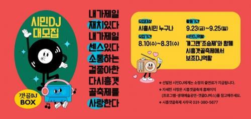 [½Åµ¿¾Æ¹æ¼Û=¹Ú´ë¿µ ±âÀÚ]½ÃÈï½Ã(½ÃÀå ÀÓº´ÅÃ)°¡ ¿À´Â 9¿ù 23ÀϺÎÅÍ 25ÀÏ¿¡ ¿­¸®´Â ½ÃÈï°¹°ñÃàÁ¦ÀÇ ¡®°¹°ñDJ¹Ú½º¡¯¿¡¼­ °¹°ñDJ¿Í ÇÔ²²ÇÒ ½Ã¹ÎDJ Âü¿©ÀÚ¸¦ ¸ðÁýÇÑ´Ù.
