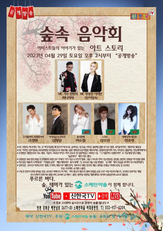 º½ ¸ÂÀÌ ¡°½£¼Ó À½¾Çȸ¡±´Â 4¿ù 29ÀÏ Åä¿äÀÏ ¿ÀÈÄ 2½ÃºÎÅÍ °È±º ÇØ¾È³²·Î 2677-21, ¡®½ºÆäÀθ¶À» ¾ß¿Ü °ø¿¬À塯¿¡¼ ¿¸®¸ç À¯Æ©ºê ¡°½ÅÇѱ¹TV¡° ä³Î·Î ½Ç½Ã°£ »ý Áß°è¿Í ÇÔ²² ÇöÀå¿¡¼ ¸®¾ó °ø¿¬ÀÌ ÆîÃÄÁø´Ù. ´çÀÏ ¾ß¿Ü °ø¿¬ÀåÀº ¹«·áÀÔÀåÀÌ¸ç ½ºÆäÀθ¶À»(ÁÖÃÖ) °ü°èÀÚ´Â ¸ðµçºÐµé²²¼´Â ¸¶½ºÅ©¸¦ ²À Âø¿ëÀ» ºÎŹÇÑ´Ù°í ÀüÇß´Ù,