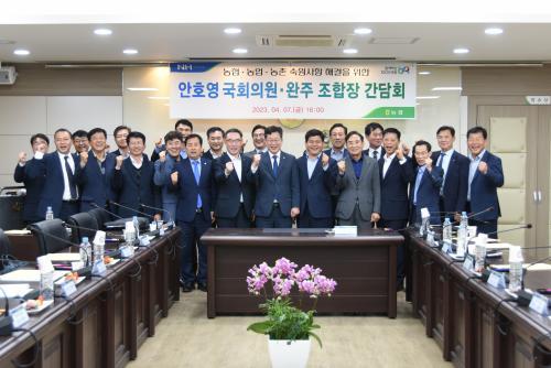 [½Åµ¿¾Æ¹æ¼Û=ÀüÀº¼÷±âÀÚ]³óÇù ÀüÁÖ¿ÏÁֽñºÁöºÎ(ÁöºÎÀå ±è´ëÈ£)¿Í ¿ÏÁÖ±ºÁ¶ÇտÇùÀÇȸ(ÀÇÀå À¯Çر¤)´Â Áö³ 7ÀÏ ´õºÒ¾î¹ÎÁÖ´ç ¾ÈÈ£¿µ ±¹È¸ÀÇ¿øÀ» ÃÊûÇÏ¿© ³óÁ¤°£´ãȸ¸¦ °³ÃÖÇß´Ù.
