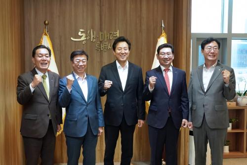 Á¤ ½ÃÀåÀº À̳¯ ½Å»óÁø ¼º³²½ÃÀå, ÀÌ»óÀÏ ¿ëÀνÃÀå, ÀÌÀçÁØ ¼ö¿ø½ÃÀå°ú ÇÔ²² ¿À¼¼ÈÆ ¼¿ï½ÃÀåÀ» ¸¸³ª ¡®¼¿ï 3È£¼± ¿¬À塤°æ±â³²ºÎ±¤¿ªÃ¶µµ¡¯ÃßÁø»ç¾÷¿¡ ÇùÁ¶¸¦ ±¸Çß´Ù.