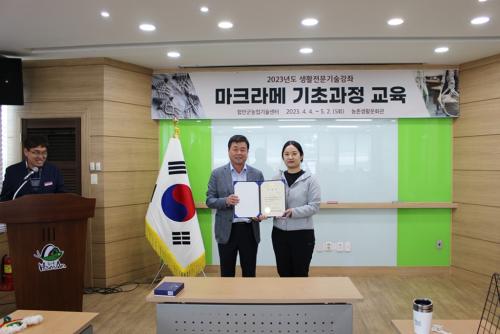 À̳¯ ¼ö·áÁõÀ» ¼ö¿©ÇÑ ÇԾȱº³ó¾÷±â¼ú¼¾ÅÍ ¾Èº´±¹ ¼ÒÀåÀº ¡°¸¶Å©¶ó¸Þ ±³À°À¸·Î ´Ù¾çÇÑ Ãë¹Ì»ýȰÀ» Á¢ÇÒ ¼ö ÀÖ´Â ±âȸÀÌÀÚ Àڱⰳ¹ß°ú ¼ºÀåÀÇ µ¿·ÂÀÌ µÇ´Â µ¥ º¸ÅÆÀÌ µÆ±æ ¹Ù¶õ´Ù. ´õ ÁÁÀº ±³À°À¸·Î ã¾ÆºË°Ú´Ù¡±°í ÀüÇß´Ù.