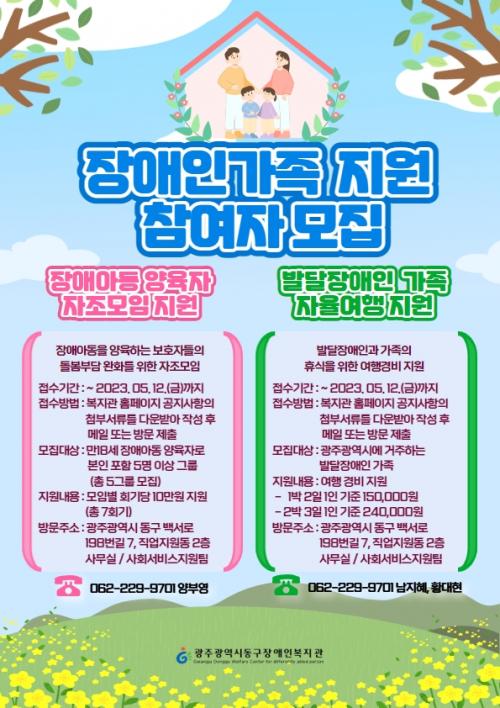 [½Åµ¿¾Æ¹æ¼Û=±èÀçÂù±âÀÚ]±¤ÁÖ±¤¿ª½Ã µ¿±¸Àå¾ÖÀκ¹Áö°ü(°üÀå Àå¼¼Á¾)ÀÌ Àå¾Ö¾Æµ¿À» ¾çÀ°ÇÏ´Â °¡Á¤À» À§ÇÑ ÀÚÁ¶¸ðÀÓ°ú ¹ß´ÞÀå¾ÖÀΰú °¡Á·ÀÇ ÈÞ½ÄÀ» À§ÇÑ ¿©Çà Áö¿ø »ç¾÷ Âü¿©ÀÚ¸¦ ¿À´Â 12ÀϱîÁö ¸ðÁýÇÑ´Ù°í ¹àÇû´Ù.