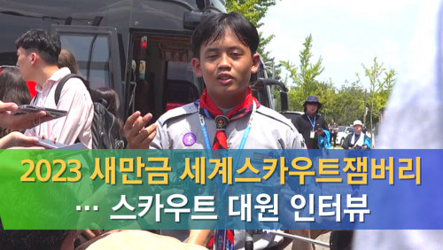 [½Åµ¿¾Æ¹æ¼Û=ÃÖ¿ëÀÏ/ÀüÀº¿µ ±âÀÚ] '2023 »õ¸¸±Ý Á¦25ȸ ¼¼°è½ºÄ«¿ìÆ®Àë¹ö¸®'°¡ °³È¸ÇÑ 1ÀÏ ÀüºÏ ºÎ¾È±º ¼¼°è½ºÄ«¿ìÆ®Àë¹ö¸® ´ëȸÀå¿¡¼ ÇÑ ½ºÄ«¿ìÆ® ´ë¿øÀÌ ÃëÀç±âÀÚ¿Í ÀÎÅͺ並 Çϰí ÀÖ´Ù.