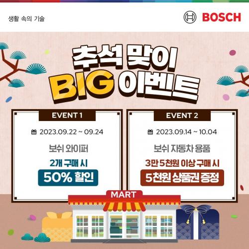 [½Åµ¿¾Æ¹æ¼Û=À̽ŵ¿±âÀÚ]º¸½¬ ÀÚµ¿Â÷ºÎǰ ¾ÖÇÁÅ͸¶ÄÏ »ç¾÷ºÎ°¡ ¸íÀý ¿¬ÈÞ¸¦ ¸ÂÀÌÇØ 9¿ù 22ÀÏ(±Ý)ºÎÅÍ 24ÀÏ(ÀÏ)±îÁö Àü±¹ À̸¶Æ®¿¡¼ º¸½¬ ¿ÍÀÌÆÛ ±¸¸Å ½Ã 50% ÇÒÀÎ ÇýÅÃÀ» Á¦°øÇÏ´Â ¡®º¸½¬ Ãß¼® ¸ÂÀÌ ºò À̺¥Æ®¡¯¸¦ °³ÃÖÇÑ´Ù.
