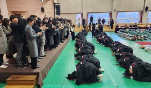 ¿ëÁ¤ÁßÇб³(±³Àå ¹Ú°æ¼±)´Â Áö³ ÁÖ¸»(2024.1.6.Åä.) Çкθð´Ô µî 200¿©¸íÀÌ Âü¼®ÇÏ¿© Á¦21ȸ Á¹¾÷½ÄÀ» ¼ºÈ²¸®¿¡ ¸¶ÃÆ´Ù. ¸Å³â ¿ëÁ¤ÁßÇб³´Â 3³â°£ Çб³¿¡¼ µ¿°íµ¿¶ôÇÑ Á¹¾÷»ýµéÀ» À§ÇØ Æ¯»öÀÖ´Â Á¹¾÷½ÄÀ» ½Ç½ÃÇϰí ÀÖ´Ù.