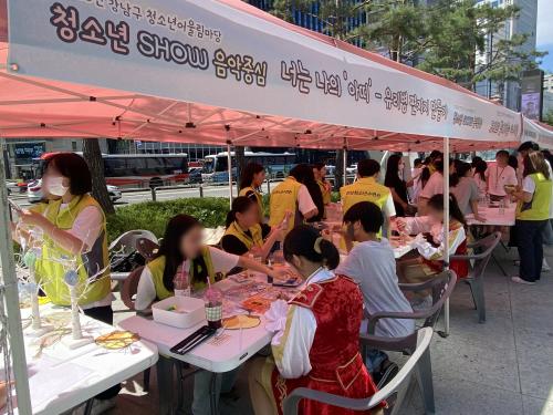 ¿ª»ïû¼Ò³â¼ö·Ã°ü(°³²±¸ ³íÇö·Î64±æ 7)Àº ±¤º¹ÀýÀ» ¸Â¾Æ ÇлýµéÀÌ Á÷Á¢ ¹®È ÇÁ·Î±×·¥ ¡®µµÀü! °ñµçº§¡¯À» ±âȹÇß´Ù. û¼Ò³â¿î¿µÀ§¿øÈ¸¿Í 5°³ÀÇ ºÀ»ç³ª´® µ¿¾Æ¸®, 7°³ÀÇ ¹®È¿¹¼ú µ¿¾Æ¸®°¡ ±âȹ¡¤È«º¸¡¤¹®Á¦ÃâÁ¦¡¤¿î¿µÀ» ¸ðµÎ µµ¸Ã¾Æ ÁøÇàÇß´Ù. 8¿ù 12ÀÏ ÃÑ 20ÆÀÀÌ Âü°¡ÇÑ °ñµçº§ Çà»ç´Â ÇлýµéÀÇ ¿ª»çÀǽÄÀ» °íÃëÇÒ ¼ö ÀÖ´Â ±âȹ·ÂÀÌ µ¸º¸¿´´Ù.