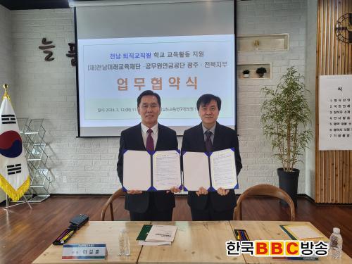 [Çѱ¹BBC¹æ¼Û Àü³²¿©¼ö=À̽ŵ¿±âÀÚ]Àü³²¹Ì·¡±³À°Àç´Ü À̱æÈÆ ¿øÀå°ú °ø¹«¿ø¿¬±Ý°ø´Ü ±¤ÁÖ¡¤ÀüºÏ ÁöºÎ(ÁöºÎÀå Á¶¿µÃ¶)°¡ 12ÀÏ Àü³²±³À°Ã»±³À°¿¬±¸Á¤º¸¿ø¿¡¼ ¾÷¹«Çù¾àÀ» ¸Î°í, ÅðÁ÷ ±³Á÷¿øµéÀÇ Çб³±³À°Áö¿ø Ȱ¼ºÈ¿¡ ³ª¼¹´Ù.