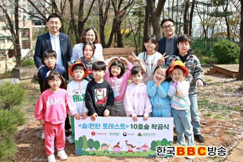 À̹ø¿¡ Âø°ø½ÄÀ» ÁøÇàÇÑ ¼¿ï°³²ÃʵîÇб³ ¡®¼û;ÆíÇÑ Æ÷·¹½ºÆ®¡¯ 10È£ ½£Àº Çб³ ³» ¾à 1,500§³ À¯ÈÞºÎÁö¿¡ ÃÑ 3õ ¿© ±×·çÀÇ ³ª¹«¸¦ ½É¾î Á¶¼ºµÈ´Ù. ½£¿¡ ½ÄÀçÇÒ ³ª¹«´Â ¹Ì¼¼¸ÕÁö Àú°¨ ¹× ź¼Ò°¨¼Ò¿¡ È¿°úÀûÀÎ ¼öÁ¾À¸·Î ±¸¼ºµÇ¸ç, ¾ÆÀ̵éÀÌ ÈÞ½ÄÀ» ÃëÇÏ´Â ½°ÅÍ¿Í »ýű³À° °ø°£À¸·Î Ȱ¿ëµÈ´Ù.