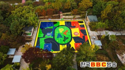 °³Æ÷µ¿±Ù¸°°ø¿øÀÇ ±âÁ¸ ³ëÈÄÈµÈ ³ó±¸Àå 2°³ ¸éÀº Æ®·»µðÇÑ µðÀÚÀÎÀ» Àû¿ëÇÑ »õ·Î¿î ³ó±¸ÀåÀ¸·Î Å»¹Ù²ÞÇß´Ù. °³Æ÷¼±Ù¸°°ø¿øÀÇ ³ó±¸Àå 1°³ ¸éÀº ¾î¸°ÀÌ¿Í °¡Á·ÀÌ ³ó±¸, ¹èµå¹ÎÅÏ, ÇÇŬº¼ µî ´Ù¾çÇÑ ½ºÆ÷Ã÷ Ȱµ¿À» Áñ±æ ¼ö ÀÖ´Â °ø°£À¸·Î ¹Ù²î¾ú´Ù.