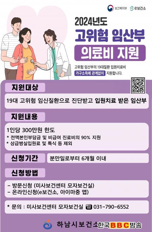 '°íÀ§Çè ÀÓ»êºÎ ÀÇ·áºñ Áö¿ø »ç¾÷'Àº ÀΰøÀӽŠ½Ã¼ú¿¡ µû¸¥ ´ÙÅÂ¾Æ Áõ°¡ µîÀ¸·Î °íÀ§Çè ÀӽŠºóµµ°¡ Áõ°¡ÇÔ¿¡ µû¶ó, ÀÓ»êºÎÀÇ °æÁ¦Àû ºÎ´ã ¿ÏÈ¿Í °Ç°ÇÑ Ãâ»êÀ» µ½±â À§ÇØ ÃßÁøÇÏ´Â »ç¾÷ÀÌ´Ù.