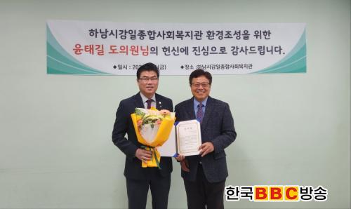 [Çѱ¹BBC¹æ¼Û Çϳ²½Ã=À̽ŵ¿±âÀÚ] »çȸº¹Áö¹ýÀÎ ÈÞ¸Õº¹Áöȸ´Â 11¿ù 29ÀÏ(±Ý), Çϳ²½Ã º¹Áöȯ°æ °³¼±¿¡ ¾ÕÀå¼°í ÀÖ´Â °æ±âµµÀÇȸ º¸°Çº¹ÁöÀ§¿øÈ¸ À±Å±æ ÀÇ¿ø¿¡°Ô °¨»çÀåÀ» Àü´ÞÇÏ¿´´Ù.