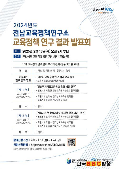 [Çѱ¹BBC¹æ¼Û Àü³²=À̽ŵ¿±âÀÚ] Àü¶ó³²µµ±³À°Ã»±³À°¿¬±¸Á¤º¸¿ø ±³À°Á¤Ã¥¿¬±¸¼Ò¿¡¼ 2024³â ¿¬±¸¼º°ú¸¦ Á¤¸®ÇÑ 2024. ±³À°Á¤Ã¥¿¬±¸¼Ò ¿¬Â÷º¸°í¼¸¦ ¹ß°£ÇÑ´Ù.