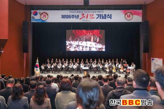[Çѱ¹BBC¹æ¼Û °æ³²ÇÔ¾È=À̽ŵ¿±âÀÚ] ÇԾȱºÀº Á¦106ÁÖ³â 3¡¤1ÀýÀ» ¸ÂÀÌÇØ 1ÀÏ ¿ÀÀü 10½Ã ÇԾȹ®È­¿¹¼úȸ°ü¿¡¼­ ±¹±Çȸº¹À» À§ÇÑ ¼ø±¹¼±¿­µéÀÇ °í±ÍÇÑ Èñ»ýÀ» ±â¸®±â À§ÇÑ 3¡¤1Àý ±â³ä½ÄÀ» °ÅÇàÇß´Ù.