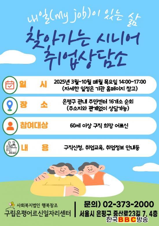 ÀºÆò¾î¸£½ÅÀÏÀÚ¸®¼¾ÅÍ´Â 60¼¼ ÀÌ»ó ¾î¸£½ÅÀÇ Ãë¾÷ ±³À°°ú ÀÏÀÚ¸® ¾Ë¼±À» ¹«·á·Î Áö¿øÇÏ´Â ±â°üÀ¸·Î, ÀçÃë¾÷À» Èñ¸ÁÇÏ´Â ±¸¹ÎÀº ÀºÆò¾î¸£½ÅÀÏÀÚ¸®¼¾ÅÍ ÀüÈ(02-373-2000)·Î ¹®ÀÇÇÏ¸é µÈ´Ù.