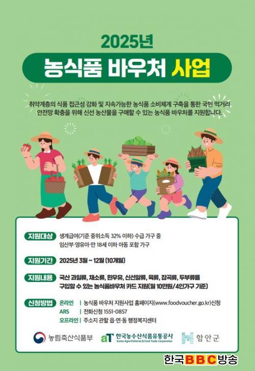[Çѱ¹BBC¹æ¼Û °æ³²ÇÔ¾È=À̽ŵ¿±âÀÚ] ÇԾȱºÀº Ãë¾à°èÃþÀÇ ½Äǰ Á¢±Ù¼º °È ¹× ³ó½Äǰ ¼Òºñü°è ±¸ÃàÀ» ÅëÇÑ ±¹¹Î ¸Ô°Å¸® ¾ÈÀü¸Á È®ÃæÀ» À§ÇØ ½Ç½ÃÇÏ´Â 2025³â ³ó½Äǰ ¹Ù¿ìó »ç¾÷ÀÇ ½ÅûÀ» ¿À´Â 12¿ù 12±îÁö »ó½Ã Á¢¼ö¹Þ´Â´Ù°í ¹àÇû´Ù.