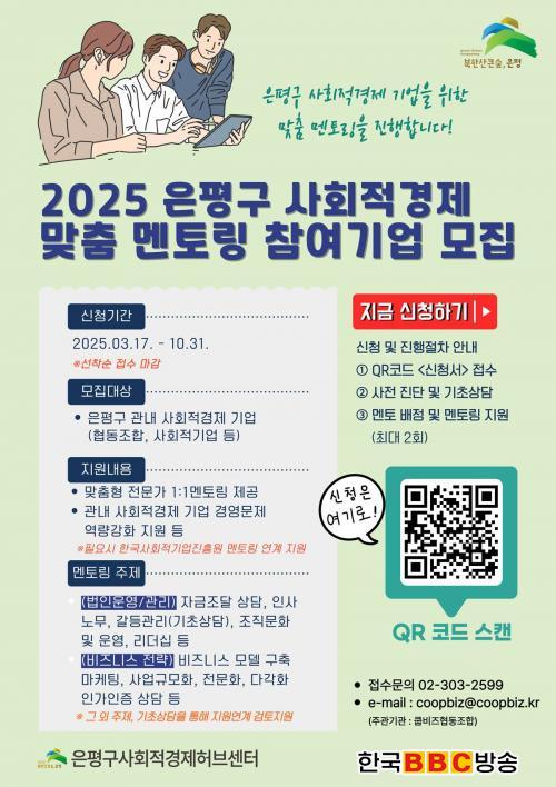 ¡®»çȸÀû°æÁ¦ ¸àÅ丵 »ç¾÷¡¯Àº ÀºÆò±¸¿¡ ÀÖ´Â Çùµ¿Á¶ÇÕ°ú »çȸÀû±â¾÷À» ´ë»óÀ¸·Î ±â¾÷ÀÌ Á÷¸éÇÑ °æ¿µ ¾Ö·Î»çÇ×À» ÇØ°áÇϰí Áö¼Ó °¡´ÉÇÑ ¼ºÀåÀ» µ½±â À§ÇØ 1:1 ¸ÂÃãÇü Àü¹® ¸àÅ丵À» Á¦°øÇÑ´Ù.