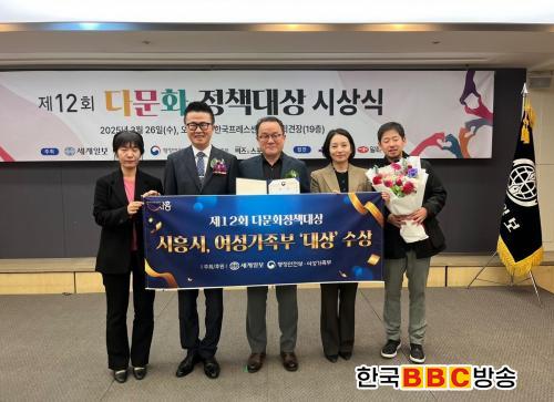 [Çѱ¹BBC¹æ¼Û ½ÃÈï½Ã=À̽ŵ¿±âÀÚ] ½ÃÈï½Ã°¡ ´Ù¹®È ¹× ¿Ü±¹ÀÎÁÖ¹ÎÀÇ Áö¿ª»çȸ ¾ÈÁ¤ÀûÀÎ Á¤ÂøÀ» À§ÇØ ÃßÁøÇÑ °¢Á¾ Á¤Ã¥ ¼º°ú¸¦ ÀÎÁ¤¹Þ¾Æ Áö³ 3¿ù 26ÀÏ Çѱ¹ÇÁ·¹½º¼¾ÅÍ¿¡¼ ¿¸° ¡®Á¦12ȸ ´Ù¹®ÈÁ¤Ã¥´ë»ó¡¯ ½Ã»ó½Ä¿¡¼ ¿©¼º°¡Á·ºÎ Àå°ü»ó(´ë»ó)À» ¹Þ¾Ò´Ù.
