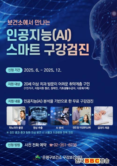 [Çѱ¹BBC¹æ¼Û ÀºÆò±¸=À̽ŵ¿±âÀÚ] ¼­¿ï ÀºÆò±¸´Â º¸°Ç¼Ò¿¡¼­ ÀΰøÁö´É(AI) ºÐ¼®À» ±â¹ÝÀ¸·Î ÇÑ ¡®½º¸¶Æ® ±¸°­°ËÁø °ü¸® ½Ã½ºÅÛ¡¯À» ³»´ÞºÎÅÍ º»°Ý ¿î¿µÇϰí 22ÀϺÎÅÍ »çÀü ÀüÈ­ Á¢¼öÇÑ´Ù°í ¹àÇû´Ù.