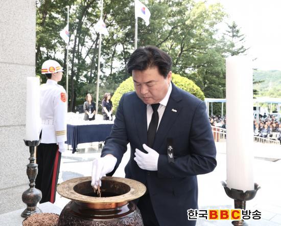 ÀÓº´Åà ½ÃÀåÀº Ãß³ä»ç¸¦ ÅëÇØ ¡°Á¶±¹À» À§ÇØ °í±ÍÇÑ »ý¸íÀ» ¹ÙÄ¡½Å ¼ø±¹¼±¿­°ú È£±¹¿µ·Éµé¿¡ ´ëÇÑ ±íÀº Ã߸ð¿Í °¨»çÀÇ ¸¶À½À» ÀüÇÑ´Ù. ±× ¼þ°íÇÑ Çå½ÅÀº °áÄÚ ÀØÇô¼­´Â ¾È µÇ¸ç ¿ì¸® °¡½¿ ¼Ó¿¡ ±æÀÌ ³²¾Æ¾ß ÇÑ´Ù¡±¶ó°í ¸»Çß´Ù. ÀÌ¾î ¡°½Ã´Â ±¹°¡¸¦ À§ÇØ Çå½ÅÇÑ ºÐµé°ú ±× °¡Á·µéÀÌ Á¸Áß¹Þ°í ¿¹¿ì¹Þ´Â »çȸ¸¦ ¸¸µé±â À§ÇØ Ã¥ÀÓ°ú ¿ªÇÒÀ» ´ÙÇϰڴ١±¶ó°í ¹àÇû´Ù.