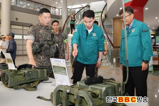 ÇÑÆí 18ÀÏ ±¸Ã» 1Ãþ ·Îºñ¿¡¼´Â µµºÀ±¸´ë´ë ÁÖ°üÀÇ ±º Àåºñ Àü½Ãȸ°¡ ¿·È´Ù. Àü½Ãȸ´Â Áö¿ª ³» ¾Èº¸ ÀǽÄÀ» ³ôÀ̰í À»Áö¿¬½À °ø°¨´ë¸¦ Çü¼ºÇϱâ À§ÇØ ¸¶·ÃµÆ´Ù.