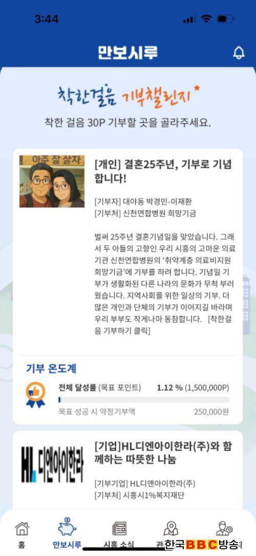 Áö³ÇØ ÃÑ 6°ÇÀÇ ±âºÎÄ·ÆäÀÎ ¸ñÇ¥¸¦ ÅëÇØ ÃÑ 5,130¸¸ ¿øÀÇ ±âºÎ±ÝÀ» ½ÃÈï½Ã1%º¹ÁöÀç´Ü, ½Åõ¿¬ÇÕº´¿ø µî¿¡ Àü´ÞÇÑ ¸¸º¸½Ã·ç ±âºÎ 縰Áö´Â ¿ÃÇØ 8¿ù ÇöÀç ¸¸º¸½Ã·ç ¾Û °¡ÀÔÀÚ 6¸¸ 2õ¿© ¸í °¡¿îµ¥ 3¸¸ 5õ¿© ¸íÀÌ Âü¿©ÇØ ÃÑ 7°Ç, 6,955¸¸ ¿øÀÇ ±âºÎ¾×À» ±â·Ï ÁßÀÌ´Ù.