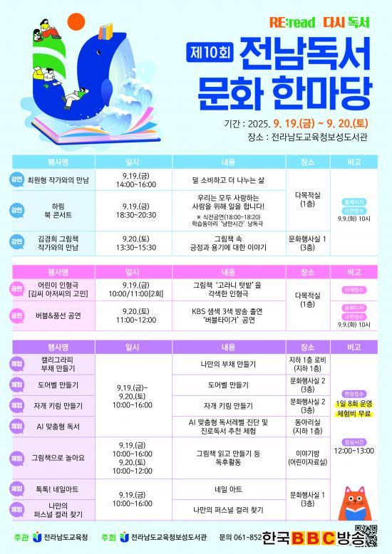 [Çѱ¹BBC¹æ¼Û Àü³²º¸¼º=À̽ŵ¿±âÀÚ] Àü¶ó³²µµ±³À°Ã»º¸¼ºµµ¼°üÀº ¿À´Â 19ÀÏ(±Ý)ºÎÅÍ 20ÀÏ(Åä)±îÁö ÀÌÆ²°£, ¡¸Á¦10ȸ Àü³²µ¶¼¹®ÈÇѸ¶´ç¡¹À» °³ÃÖÇÑ´Ù. ¡®RE:read ´Ù½Ã µ¶¼¡¯¸¦ ÁÖÁ¦·Î ¿¸®´Â À̹ø Çà»ç´Â µ¶¼¸¦ ¸Å°³·Î ÇÑ ´Ùä·Î¿î ÇÁ·Î±×·¥À» ÅëÇØ Áö¿ª¹Î°ú Çлýµé¿¡°Ô Ã¥ Àд Áñ°Å¿òÀ» ¼±»çÇÒ ¿¹Á¤ÀÌ´Ù.