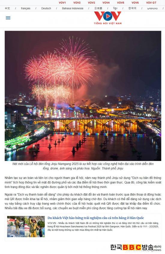 Áö³­ 10¿ù 5ÀÏ, º£Æ®³² ÁÖ¿ä ¹æ¼Û»çÀΠȣÂî¹Î½ÃƼÅÚ·¹ºñÀü(Ho Chi Minh City Television, HTV)¿¡¼­µµ ÃàÁ¦ ¼Ò½ÄÀ» º¸µµÇßÀ¸¸ç, º£Æ®³² ±¹¿µ¹æ¼Û º¸À̽º ¿Àºê º£Æ®³²(VOV)°ú À¯·Â Àϰ£Áö ¶ó¿Àµ¿(Lao Động)Àº °¢°¢ ¡¸7¸¸ °³ ÀÌ»óÀÇ µîºÒÀÌ ¹àÈ÷´Â 2025 ÁøÁÖ³²°­À¯µîÃàÁ¦¡¹, ¡¸7¸¸ °³ÀÇ Âù¶õÇÑ µîÀ» º¸±â À§ÇØ ¼ö¸¹Àº ÀÎÆÄ°¡ 2025 ÁøÁÖ³²°­À¯µîÃàÁ¦·Î ¸ð¿© µé´Ù!¡¹¶ó´Â Á¦¸ñÀ¸·Î °ü·Ã ±â»ç¸¦ °ÔÀçÇß´Ù.