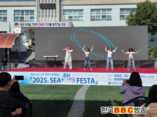 [Çѱ¹BBC¹æ¼Û Àü³²½Å¾È=À̽ŵ¿±âÀÚ] Àü¶ó³²µµ½Å¾È±³À°Áö¿øÃ»Àº 2025³â 10¿ù 22ÀÏ (¼ö) ¾ÏÅÂÁßÇб³¿¡¼­ ¹«¾È¹Ýµµ(¸ñÆ÷¡¤¹«¾È¡¤½Å¾È) Áö¿ª Çлý°ú ±³Á÷¿ø, Áö¿ª¹Î µî 1,200¿© ¸íÀÌ Âü¿©ÇÑ ¡¸2025. SEA+¹®È­¡¤¿¹¼ú FESTA¡¹¸¦ ¼ºÈ²¸®¿¡ °³ÃÖÇß´Ù.