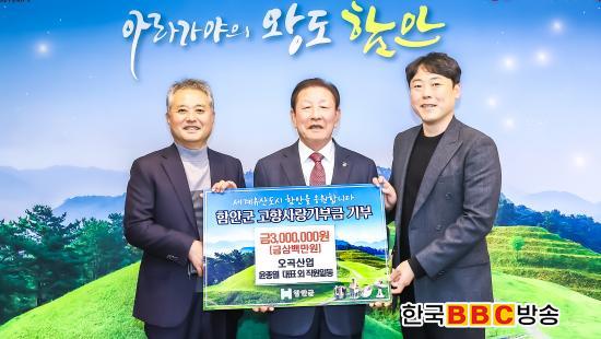 [Çѱ¹BBC¹æ¼Û °æ³²ÇÔ¾È=À̽ŵ¿±âÀÚ] ÇԾȱºÀº Áö³ 10ÀÏ ÇԾȱº Ä¥¿øÀ¾¿¡ ÀÖ´Â ¿À°î»ê¾÷ÀÌ °íÇâ»ç¶û±âºÎ±Ý 300¸¸ ¿øÀ» ±âŹÇß´Ù°í ¹àÇû´Ù.