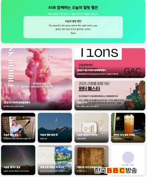 À¥Áø ³»¿ëÀº °³²Èú¸µ¼¾ÅÍ È¨ÆäÀÌÁö(www.gangnam.go.kr/healing/index.do) ¾Ë¸²¸¶´ç ¸Þ´º¿¡¼ È®ÀÎÇÒ ¼ö ÀÖ´Ù. ±¸´Â ¾ÕÀ¸·Îµµ ´Ù¾çÇÑ ÄÜÅÙÃ÷¸¦ º¸°ÇØ ¿ÀÇÁ¶óÀÎ ÇÁ·Î±×·¥°ú ½Ã³ÊÁö¸¦ ³»´Â ¡®µðÁöÅÐ Èú¸µ ¶óÀÌÇÁ¡¯ ȯ°æÀ» ±¸ÃàÇØ ³ª°¥ ¹æÄ§ÀÌ´Ù.