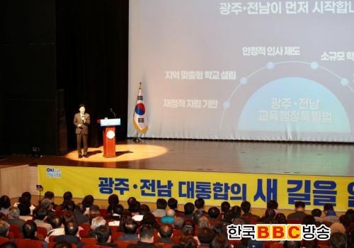 ±è´ëÁß ±³À°°¨Àº ¡°±¤ÁÖ±³À°Àº ÀüÅëÀûÀ¸·Î ¡®½Ç·Â±¤ÁÖ¡¯ÀÇ ¸í¼ºÀ» ÀÚ¶ûÇϰí ÀÖÀ¸¸ç, Àü³²±³À°Àº ³ó»ê¾îÃÌ ÀÛÀºÇб³ ±³À°°ú ±Û·ÎÄà ¹Ì·¡±³À°¿¡ °æÀï·ÂÀÌ ÀÖ´Ù¡±¸é¼­ ¡°ÅëÇÕÀ» ÅëÇØ ÀÌ·± ÀåÁ¡À» ³ª´©°í ¹ÌÈíÇÑ Á¡Àº »óÈ£ º¸¿ÏÇÏ¿© ½Ã³ÊÁö¸¦ ³»¸é K-±³À°ÀÇ ¼±µÎÁÖÀÚ·Î ¿ì¶Ò ¼³ ¼ö ÀÖÀ» °Í.¡±ÀÌ°í ¿ª¼³Çß´Ù.