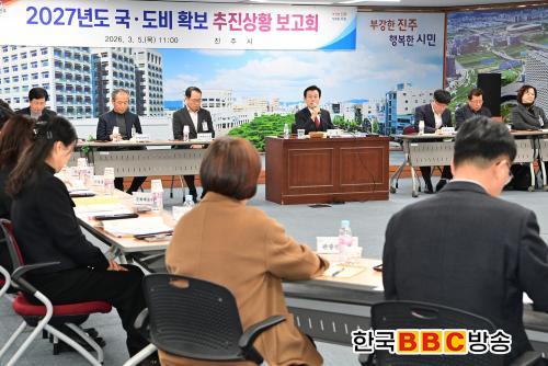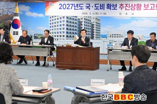[Çѱ¹BBC¹æ¼Û °æ³²ÁøÁÖ=±è¸í¼ö±âÀÚ] ÁøÁֽô 5ÀÏ Á¶±ÔÀÏ ½ÃÀå ÁÖÀç·Î ºÎ½ÃÀå°ú ±¹¡¤°úÀå µî °£ºÎ °ø¹«¿øÀÌ Âü¼®ÇÑ °¡¿îµ¥ ¡®2027³âµµ ±¹¡¤µµºñ È®º¸¸¦ À§ÇÑ ÃßÁø »óȲ º¸°íȸ¡¯¸¦ °³ÃÖÇß´Ù.