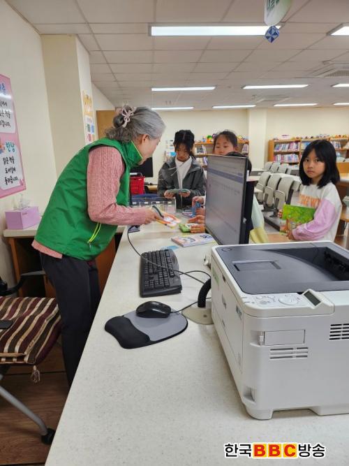 ¼±¹è±³Á÷¿ø ÀÚ¿øºÀ»çÀÚ°¡ Çб³µµ¼­°ü¿¡¼­ Çлýµé¿¡°Ô µµ¼­¸¦ ´ëÃâ ÇØÁÖ°í ÀÖ´Ù.
