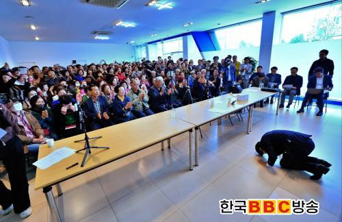 ±âÀÚȸ°ß¿¡¼ ¹Ú ¿¹ºñÈ帴 °æ¼± ºÒÂü¿¡ ´ëÇÑ ÀÔÀåÀ» ¹àÈ÷¸ç ½Ã¹Îµé¿¡°Ô »ç°úÇϰí, Å»´ç ¹è°æ°ú ÇâÈÄ °èȹÀ» ¼³¸íÇß´Ù.