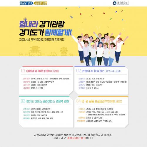 À̹ø °ü±¤¾÷°è Ȱ¼ºÈ Áö¿ø»ç¾÷Àº ¡®Èû³»¶ó °æ±â°ü±¤, °æ±âµµ°¡ ÇÔ²²ÇÒ°Ô¡¯¶ó´Â ºÎÁ¦·Î ¡ã¿©Çà¾÷°è ƯÈÁö¿ø ¡ã°ü±¤¾÷°è üÁú°³¼± ¡ã¸¶À̽º °æÀï·Â °È ¡ã¹Î°ü°øµ¿ÇÁ·Î¸ð¼Ç ÂøÇÑ¿©Çà ½ÃÁð2·Î ±¸¼ºµÈ´Ù.