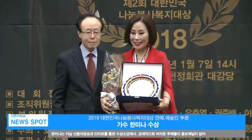 À̳¯ ´ëÇѹα¹ ³ª´®ºÀ»çº¹Áö´ë»ó ¿¬¿¹ ¿¹¼úÀÎ ºÎ¹®¿£, °¡¼ö Çѹ̳ª°¡ ´ë»óÀ» ½Ã»óÇÏ¿´½À´Ï´Ù. °¡¼ö Çѹ̳ª´Â Æ®·ÎÆ®°¡¼ö·Î¼­ ¿Õ¼ºÈ÷ Ȱµ¿ÁßÀ̸ç, °ø¿¬À» ÅëÇÑ ³ª´®°ú ºÀ»ç·Î ²ÙÁØÈ÷ »çȸ¿¡ °øÇåÇÏ¿©À̳¯ ¼ö»óÀÇ ¿µ±¤À» ¾Ê°Ô µÇ¾ú½À´Ï´Ù. ƯÈ÷ °¡¼ö Çѹ̳ª´Â °¡¿ä°è ¼±¹è¡¦