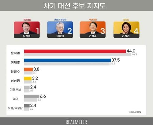 ´ÙÀÚ´ë°á¼­ À±¼®¿­ 44% vs ÀÌÀç¸í 37.5%¡¦°ÝÂ÷ 6.5%p·Î °¨¼Ò