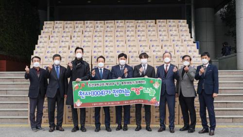[Çѱ¹BBC¹æ¼Û=±èÀçÂù ±âÀÚ] Á¶¼±´ëÇб³¿Í 34´ë 'Á¤(ïá)' ÃÑÇлýȸ°¡ ¿¬¸»¿¬½Ã ¾î·Á¿î Áö¿ª ³» ÀÌ¿ôÀ» µ½±â À§ÇØ ±âºÎ¹°Ç°À» Àü´ÞÇÏ´Â ÇÁ·ÎÁ§Æ®¸¦ ÁøÇàÇØ ÈÆÈÆÇÔÀ» ÀھƳ»°í ÀÖ´Ù. Á¶¼±´ëÇб³¿Í ÃÑÇлýȸ°¡ 24ÀÏ ±¤ÁÖ µ¿±¸Ã»»ç ¾Õ¿¡¼­ ÁøÇàÇÑ 'õ»ç(1004)°¡ ÀüÇÏ´Â Á¤¡¦