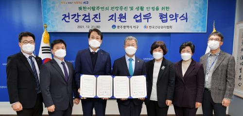 [Çѱ¹BBC¹æ¼Û=±èÀçÂù ±âÀÚ] ±¤ÁÖ ¼­±¸(±¸Ã»Àå ¼­´ë¼®)°¡ Áö³­ 21ÀÏ ºÏÇÑÀÌÅ»ÁÖ¹ÎÀÇ °Ç°­ÁõÁø ¹× »ýȰ¾ÈÁ¤À» À§ÇØ Çѱ¹°Ç°­°ü¸®Çùȸ ±¤ÁÖ¡¤Àü³²ÁöºÎ(º»ºÎÀå ±è°èȯ)¿Í °Ç°­°ËÁø Áö¿ø ¾÷¹«Çù¾àÀ» ü°áÇß´Ù°í ¹àÇû´Ù. ¾ç ±â°üÀº À̳¯ Çù¾àÀ» ÅëÇØ °ü³» ºÏÇÑÀÌÅ»ÁÖ¹ÎÀÇ ¡¦